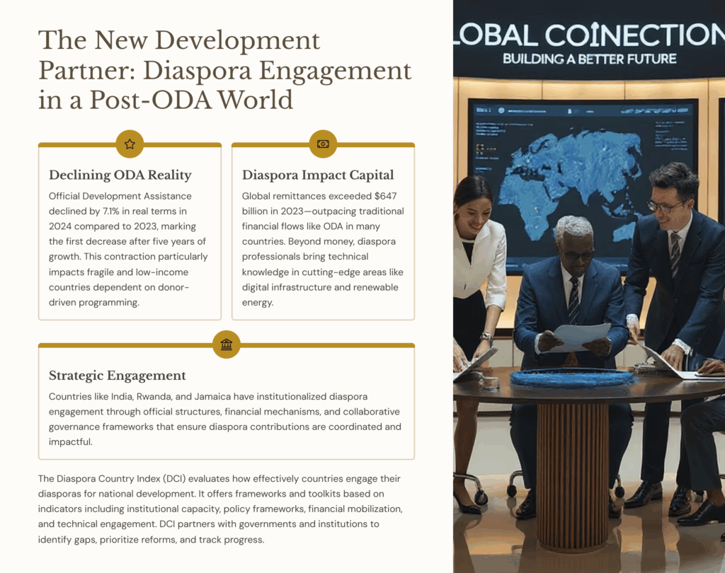 As global Official Development Assistance (ODA) declines, countries face growing pressure to find sustainable alternatives to traditional development finance. In response, the Diaspora Country Index (DCI) is championing a powerful, often overlooked solution: the diaspora.